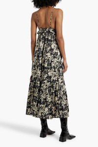Ruffled printed satin-crepe midi dress