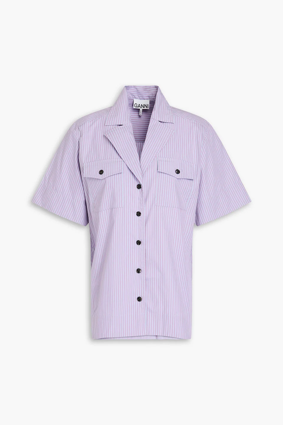 Shirt striped cotton-poplin pleated back breast pockets side slits button fastenings through front mid-weight, non-stretchy fabric dry clean imported 100% Organic Cotton Product Code 1647597349235539