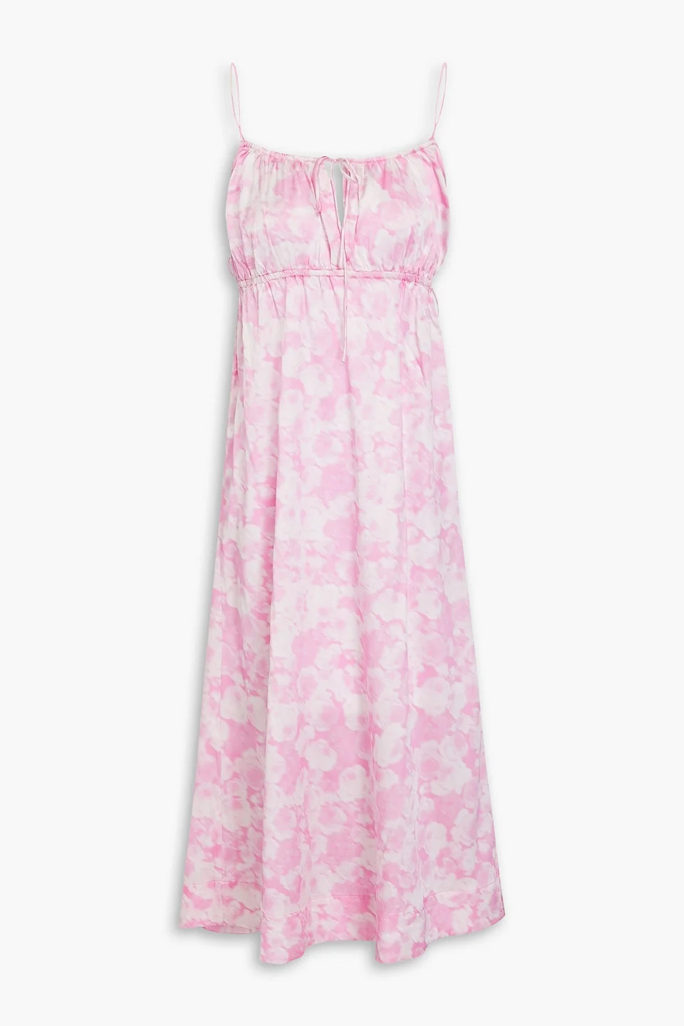Tie-detailed printed silk-blend satin midi dress