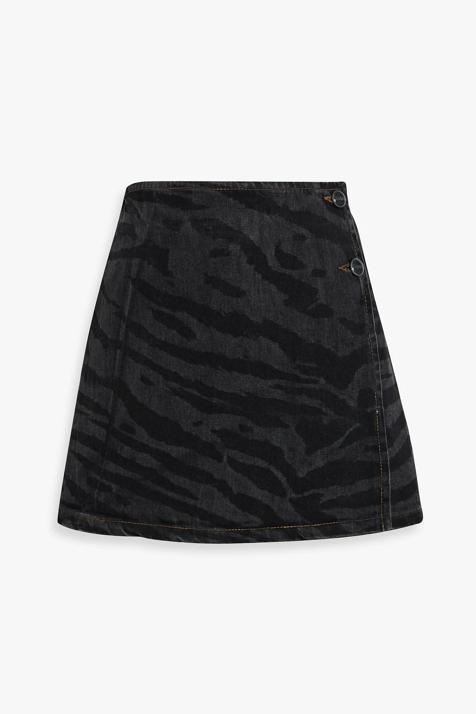 Tiger-print denim mini wrap skirt