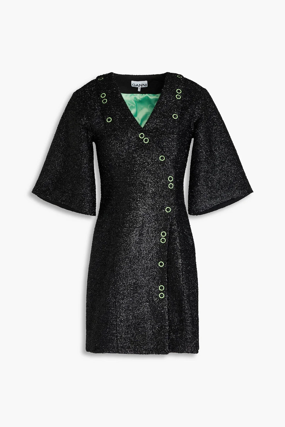Wrap dress tinsel bell sleeves snap fastenings through front mid-weight, slightly stretchy fabric machine wash imported 60% Recycled polyester 30% Wool 5% Polyamide 3% Acrylic 2% Viscose Product Code 1647597336493427
