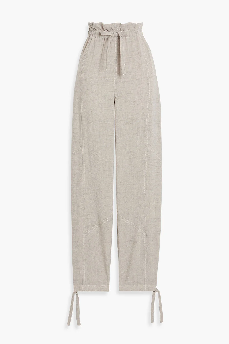 Tapered pants woven back welt pocket elasticated drawstring waist high-rise cut tied cuffs mid-weight, non-stretchy fabric dry clean imported 50% Polyester 50% Recycled polyester Product Code 46376663162853666