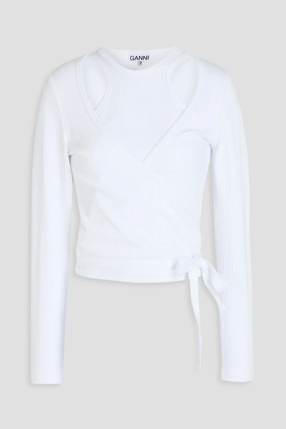 Wrap-effect layered ribbed ECOVERO™-blend jersey top