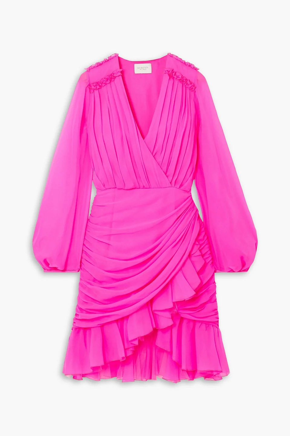 Wrap-effect ruffled silk-georgette mini dress