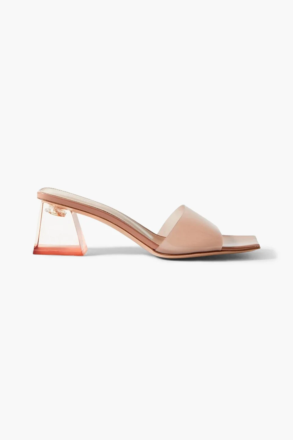 Mules pvc open square toe perspex heel slip on leather sole made in italy Gianvito Rossi's mules are set on geometric plexiglass heels that are completely see-through, putting the shoes' central screws on full display. They've been handcrafted in Italy from sand PVC and lined in leather for added comfort. 100% Thermoplastic polyurethane Product Code 1647597353992169