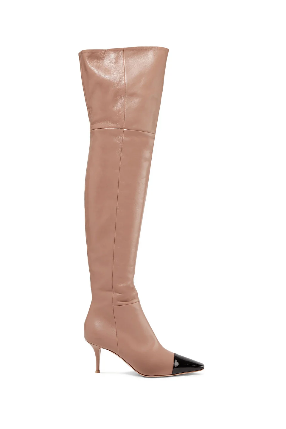 Over-the-knee boots two-tone leather patent-leather trims pointed toe concealed zip fastening along side leather sole made in italy 100% Calf-skin leather Product Code 22527730565695948