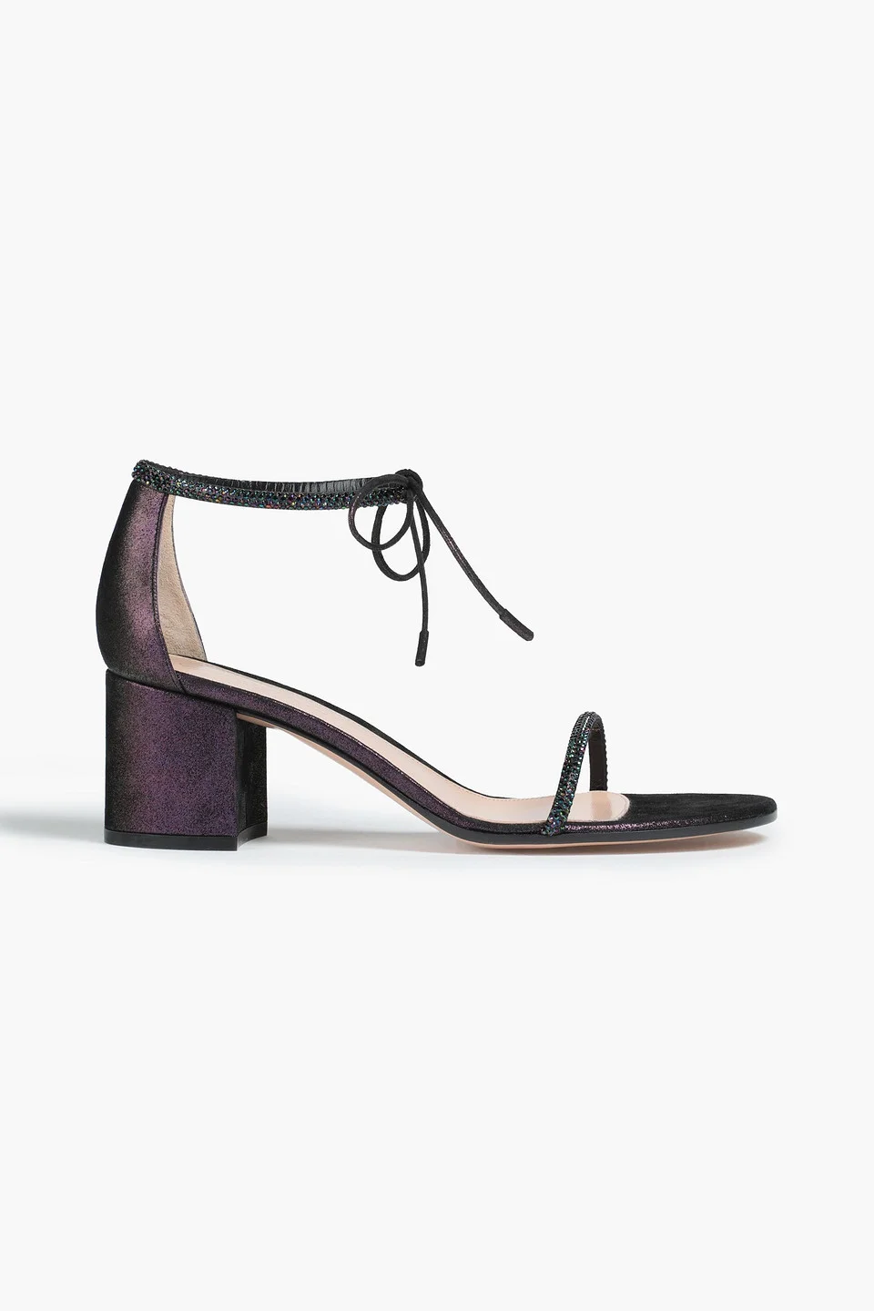 Aria 60 crystal-embellished metallic suede sandals