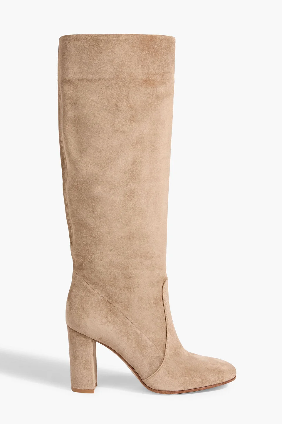Knee boots suede block heel almond toe pull on leather sole made in italy 100% Goat skin Product Code 46376663162954610