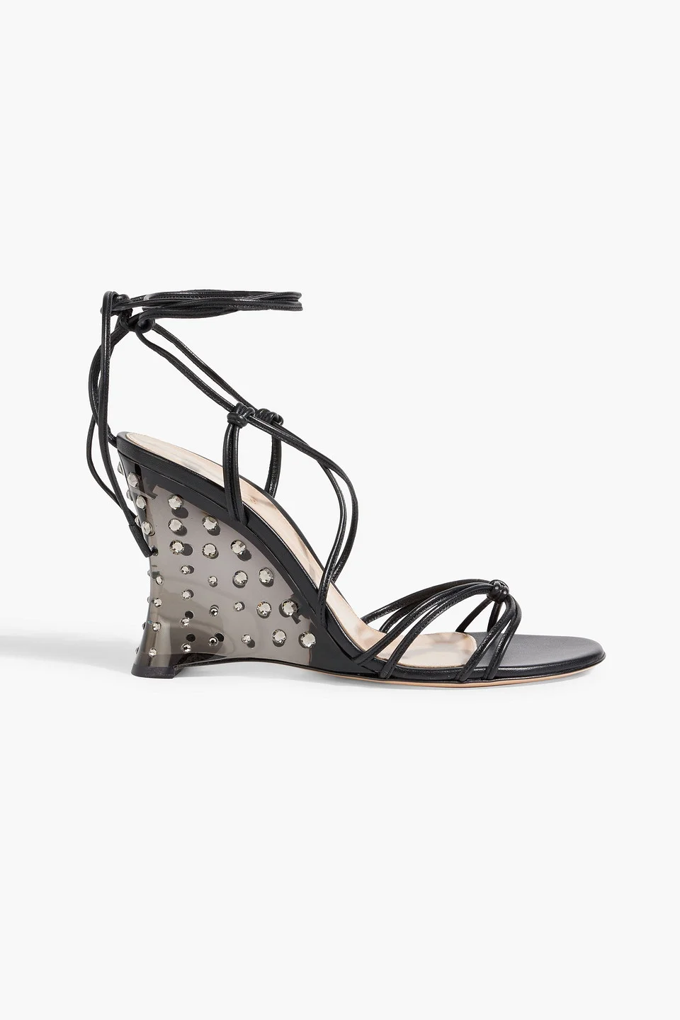 Sandals leather crystals open round toe pvc wedge ties at ankle leather sole made in italy 100% Leather Product Code 1647597356088960