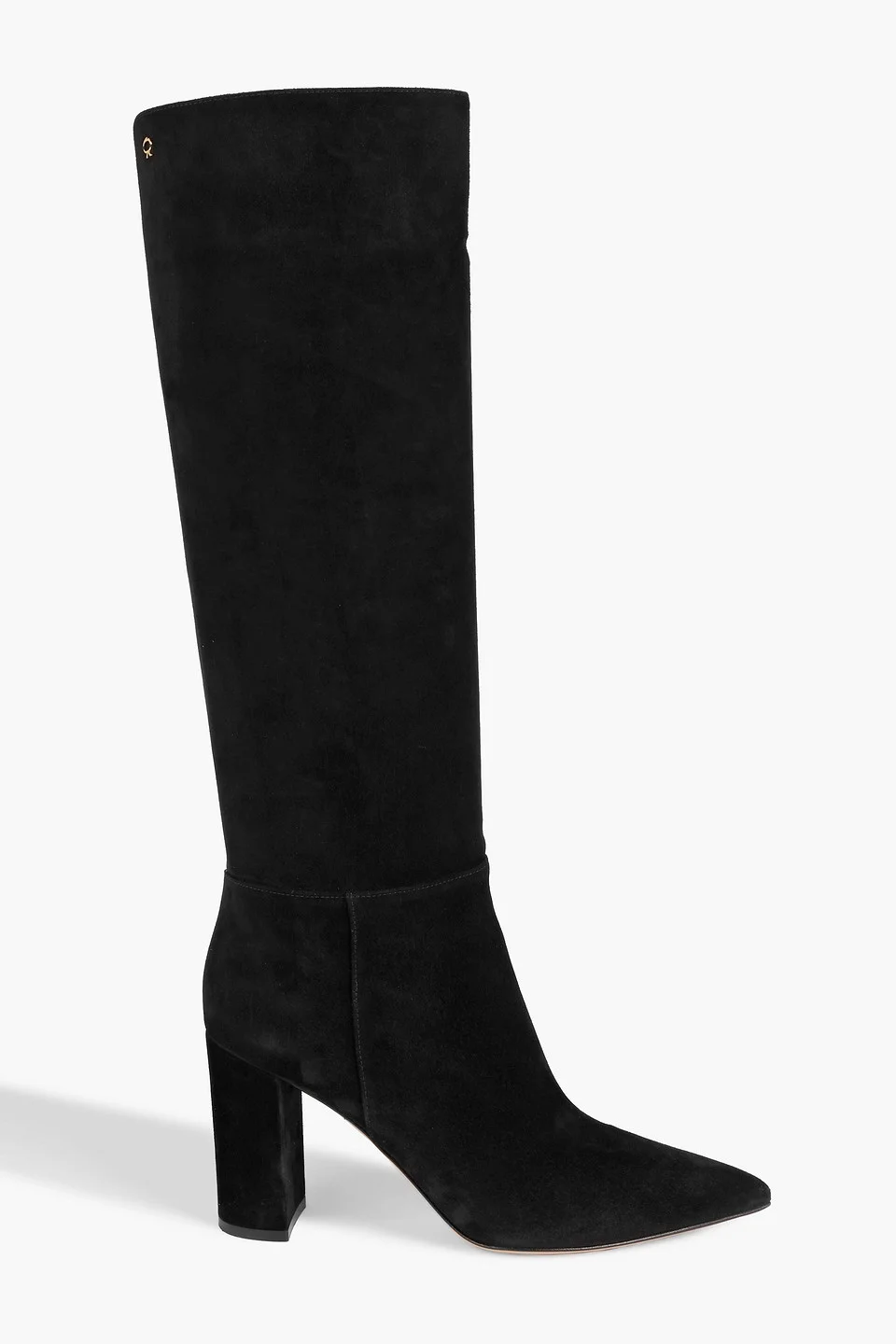 Knee boots suede block heel pointed toe pull on leather sole made in italy If you’re looking to invest in a great pair of boots, Gianvito Rossi’s knee-high style should be in your basket. They’re crafted from luxe black suede with sturdy block heels and pointed toes. We like them worn over skinny jeans and under flowing dresses just as much. 100% Leather Product Code 46376663163127775