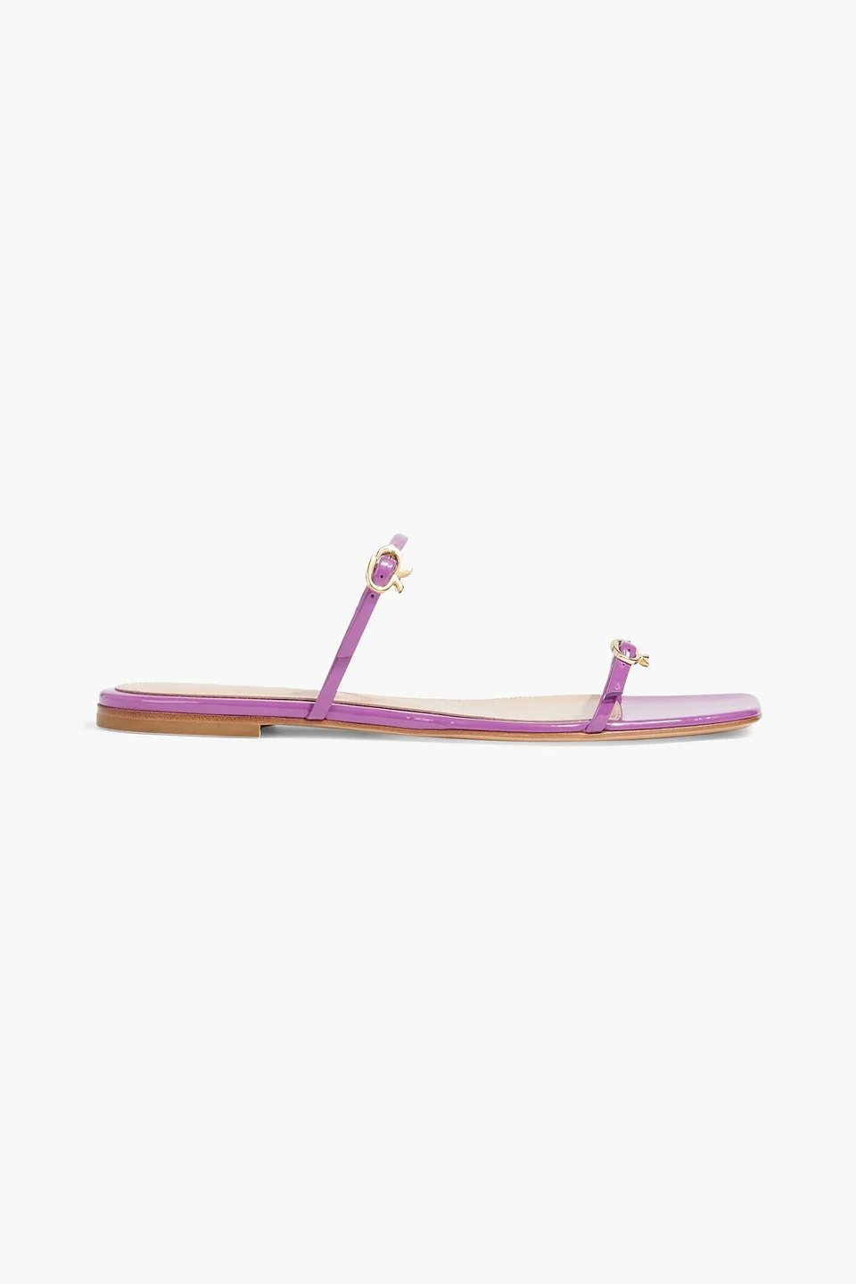 Sandals patent-leather buckled straps open square toe slight heel slip on leather sole made in italy 100% Leather Product Code 46376663162846956