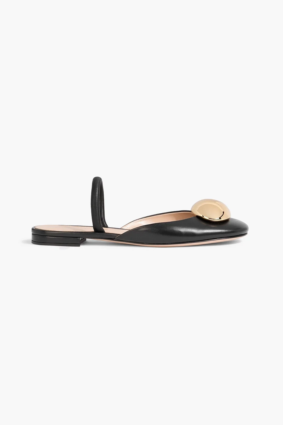 Flats leather embellished round toe slight heel slip on leather sole made in italy 100% Leather Product Code 46376663163093172