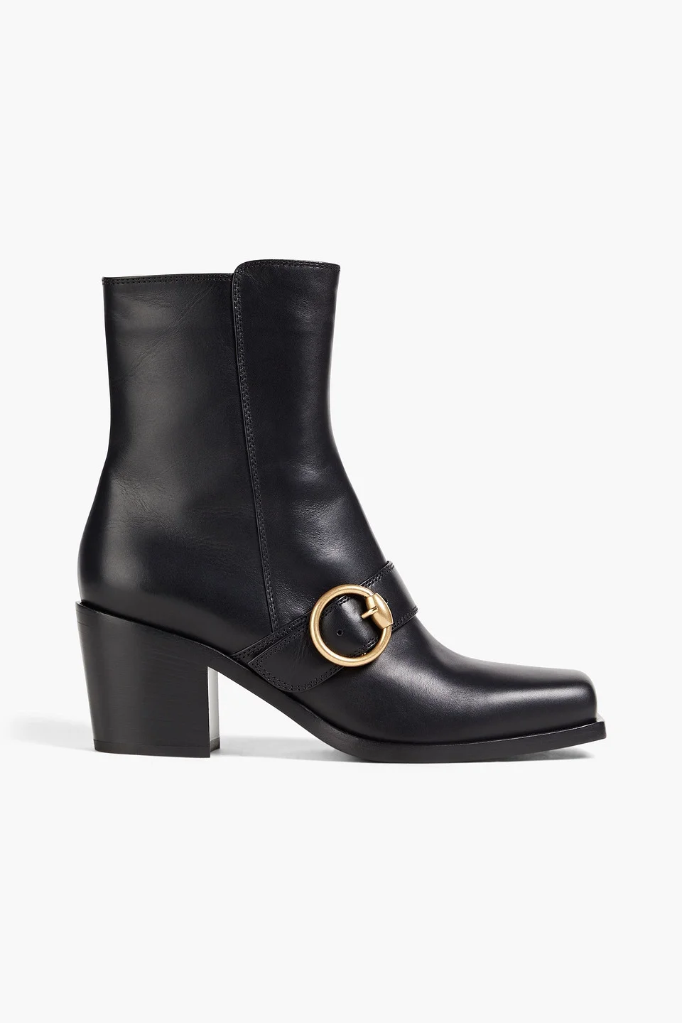 Ankle boots leather buckled side stacked heel square toe concealed zip fastening along side leather sole made in italy 100% Calf-skin leather Product Code 1647597335568576