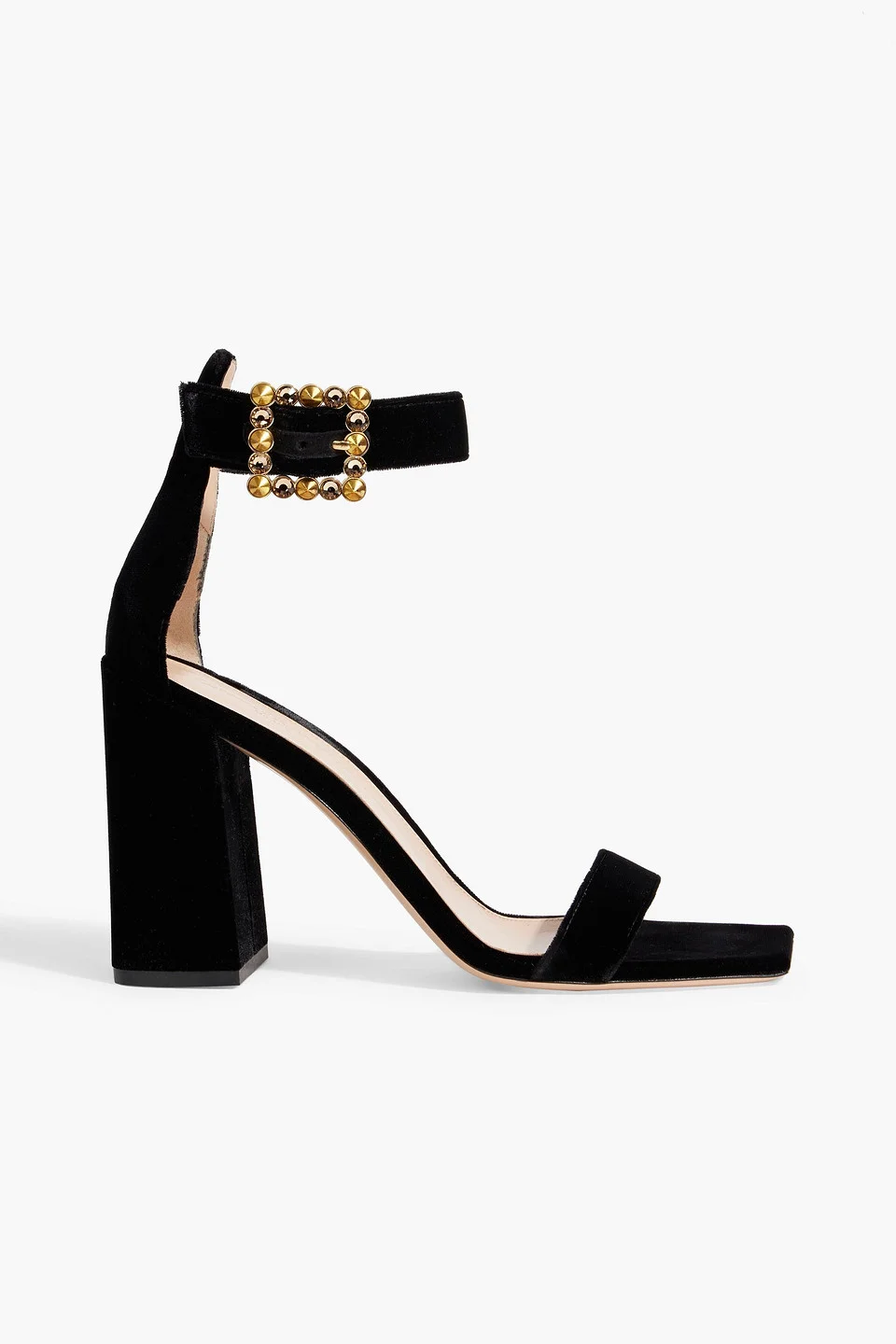Sandals velvet crystals open square toe block heel buckle-fastening ankle strap leather sole made in italy 100% Textile fibers Product Code 46376663162847808