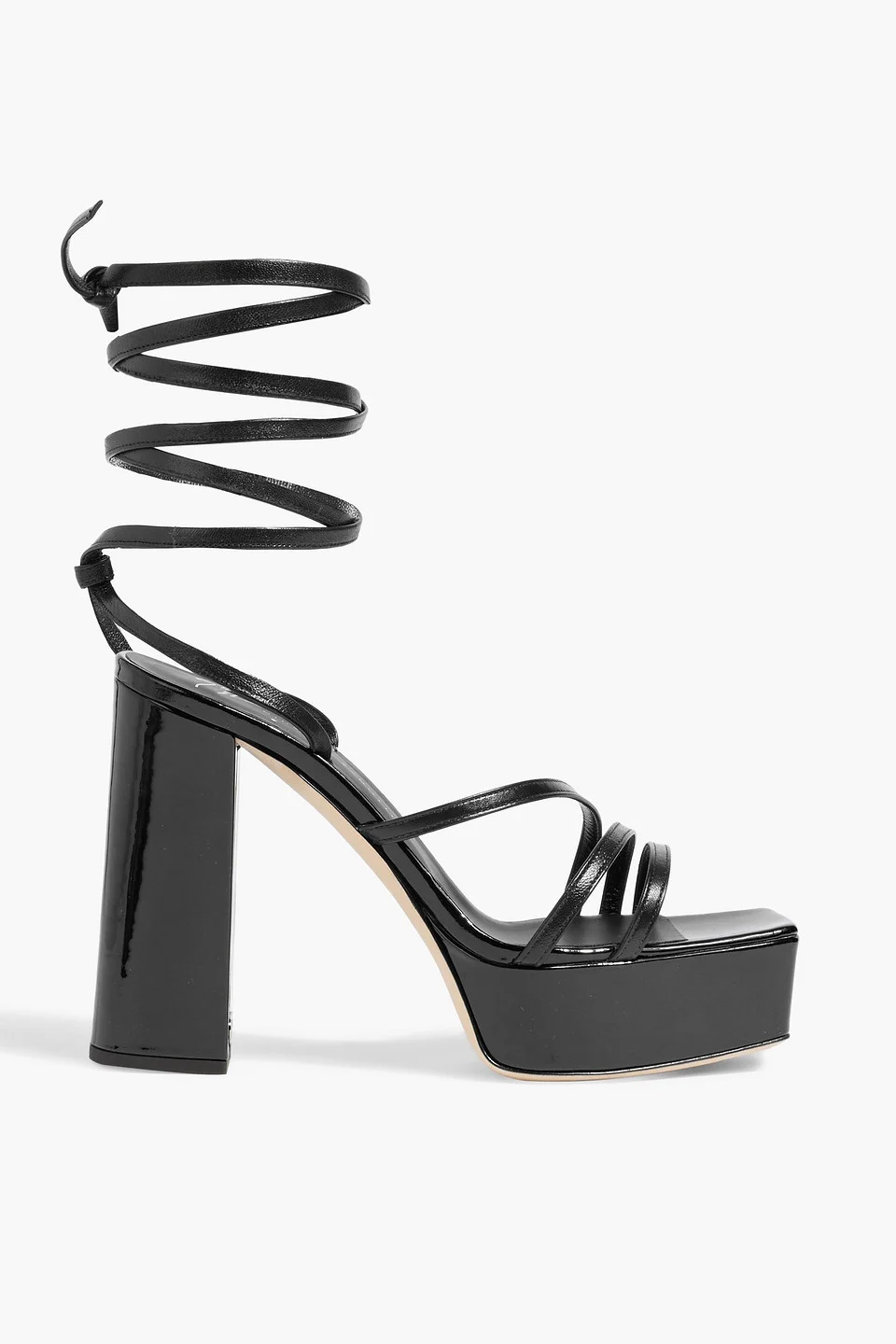 Sandals leather platform open square toe block heel ties at ankle leather sole made in italy 100% Leather Product Code 1647597357037309