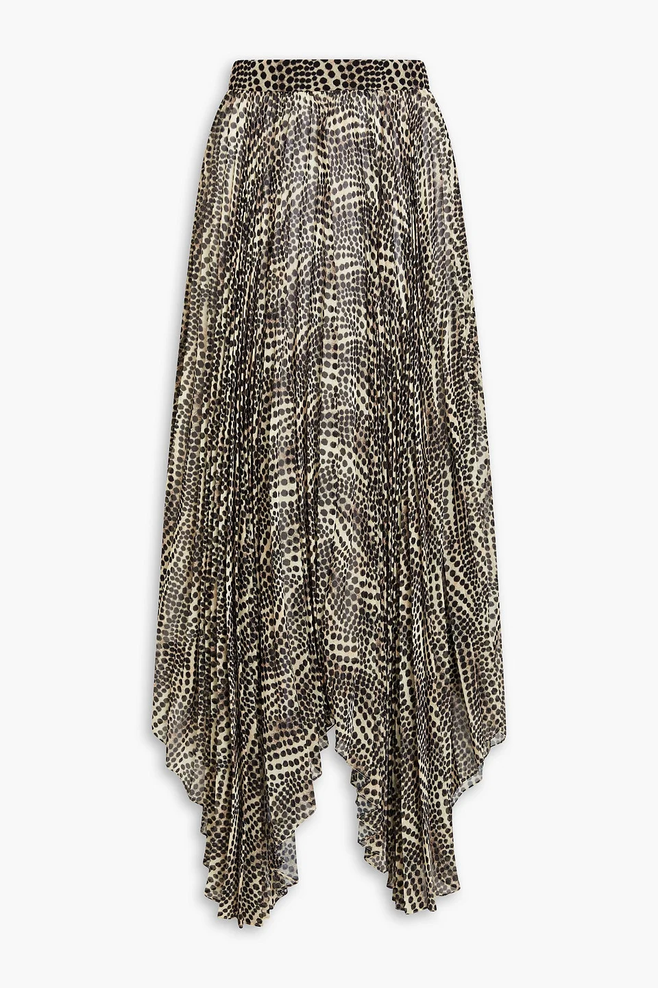 Skirt printed chiffon pleated handkerchief hem fully lined concealed button fastening at back lightweight fabric dry clean imported 100% Polyester Product Code 1647597330219936