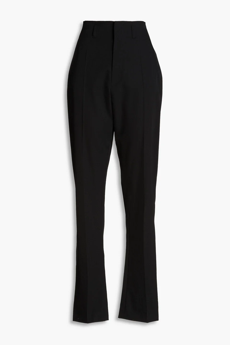 Tapered pants wool-twill two side slant pockets two back welt pockets belt loops high-rise cut concealed hook and zip fastening at front non-stretchy fabric mid-weight fabric dry clean imported 100% Wool Product Code 1647597330221580
