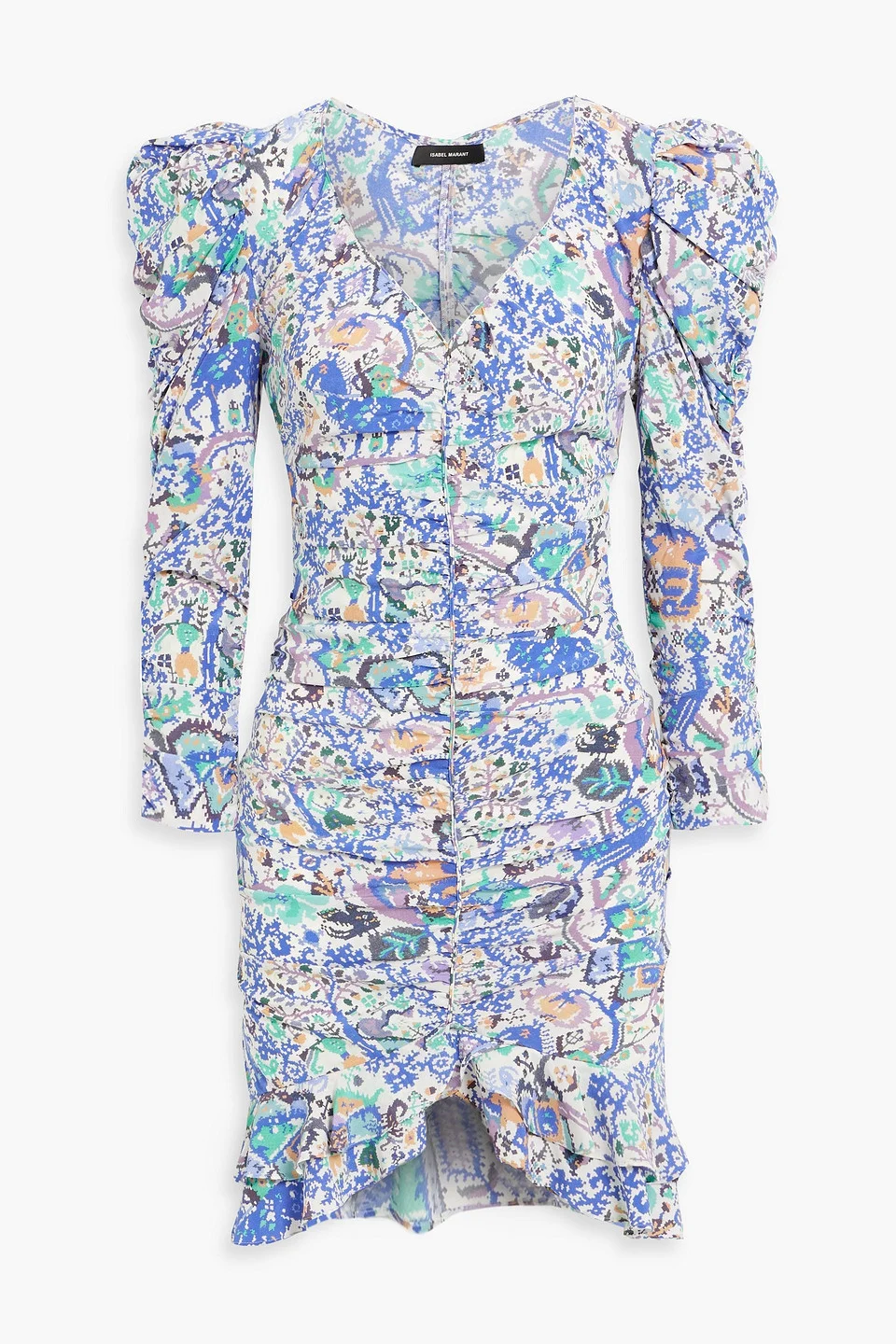 Dress printed stretch-silk ruched ruffled hem concealed zip fastening along side lightweight, stretchy fabric dry clean imported 91% Silk 9% Elastane Product Code 46376663162922434