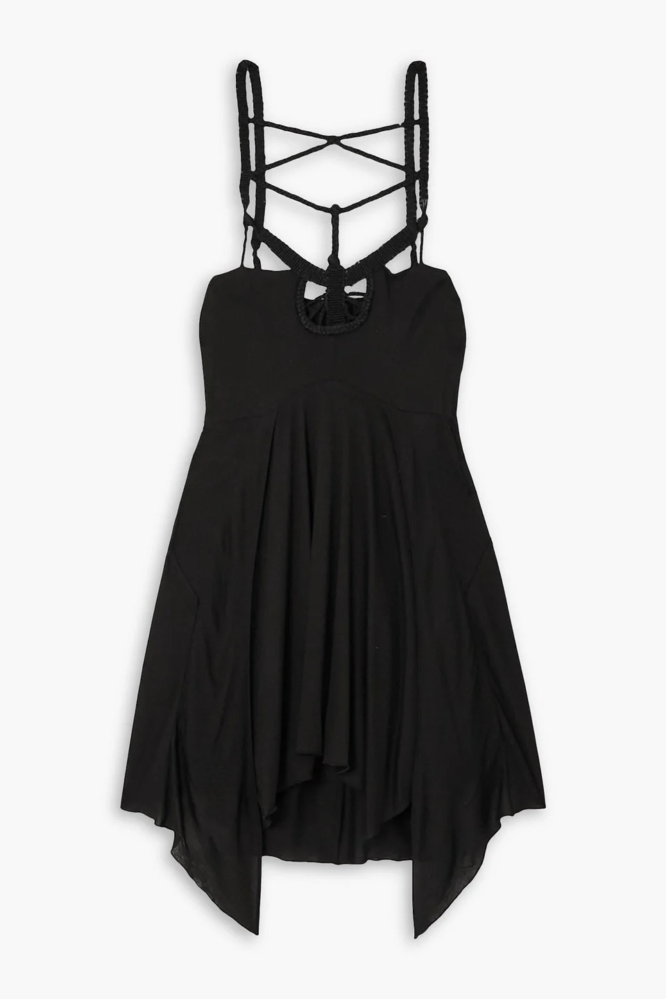 Dress jersey macrame trims adjustable straps handkerchief hem concealed hook and zip fastening at back partially lined mid-weight, stretchy fabric dry clean imported Isabel Marant's 'Diana' dress is made from jersey with macrame trims and falls to a fluttery handkerchief hem. Wear yours with sandals and minimal jewelry. 100% Viscose Product Code 1647597346309668