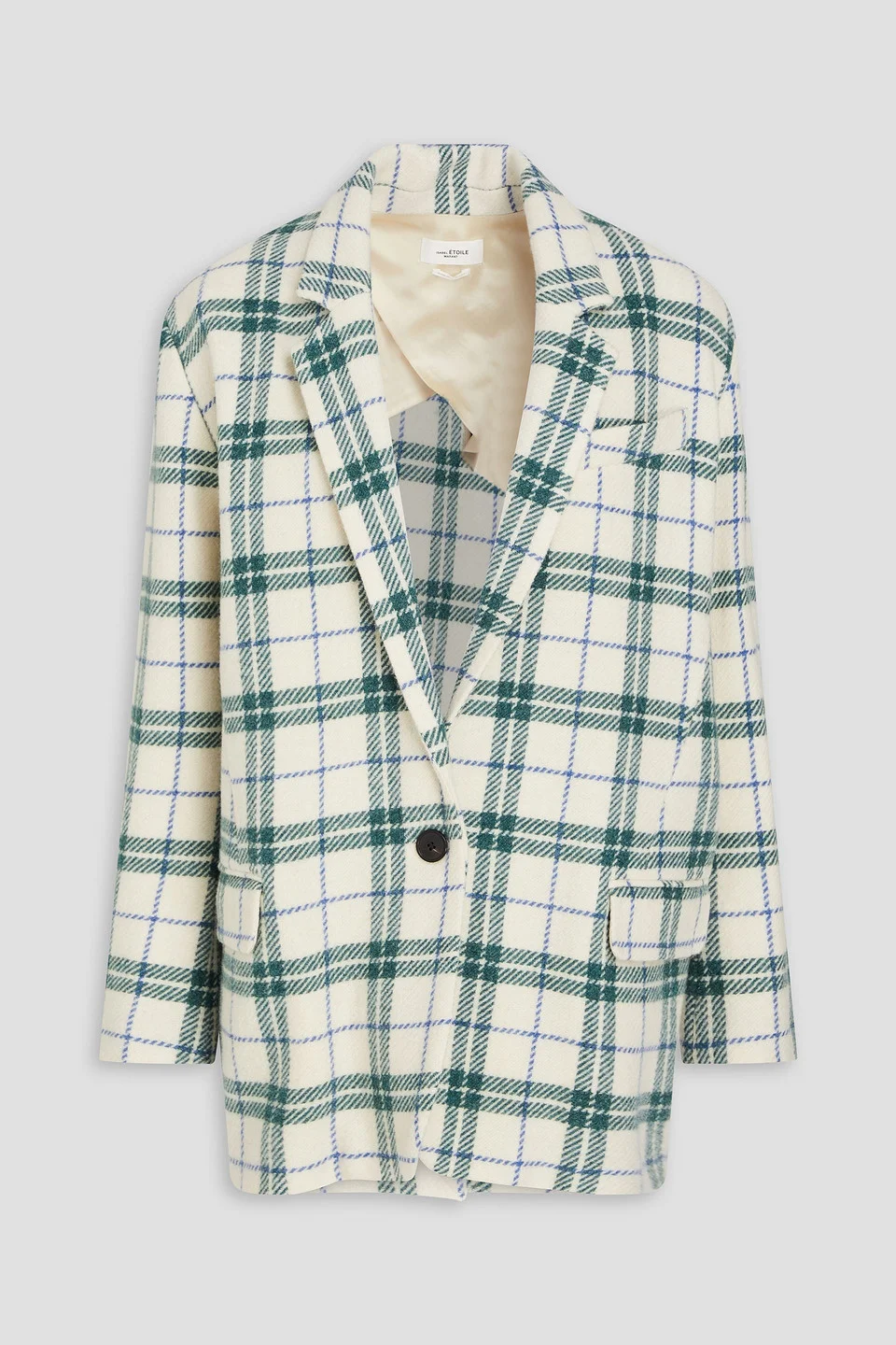 Blazer checked wool-tweed shoulder pads buttoned cuffs two front flap pockets breast pocket button fastening at front partially lined back vent mid-weight, non-stretchy fabric dry clean imported 100% Virgin Wool Product Code 1647597344901659