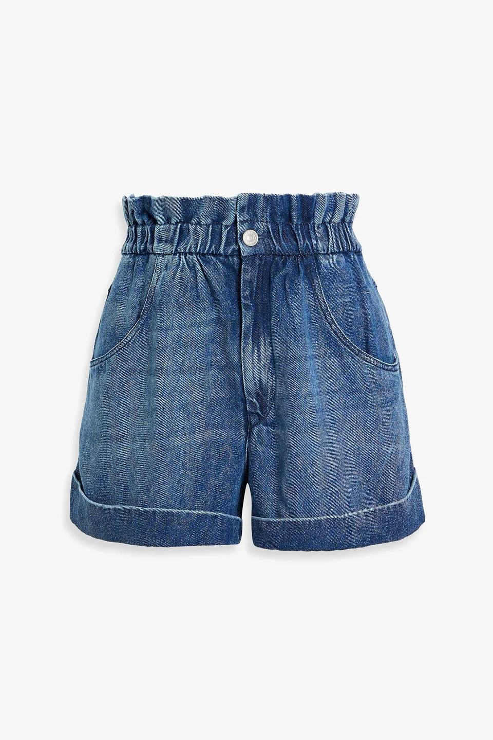Shorts denim high-rise cut front slant pockets back patch pockets folded cuffs button and concealed zip fastening at front mid-weight, non-stretchy fabric dry clean imported 100% Lyocell Product Code 46376663162921800