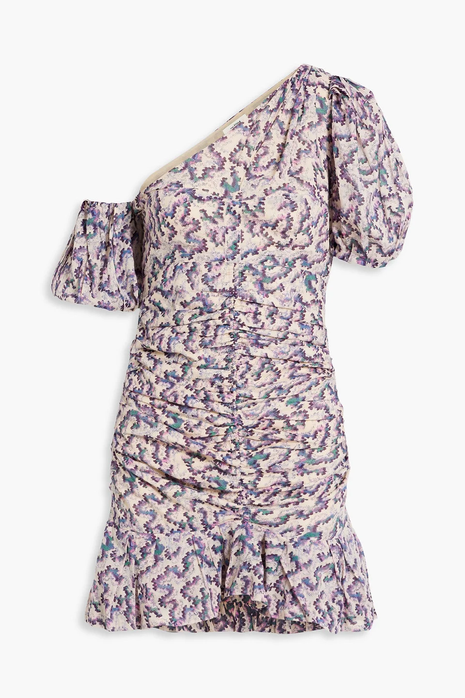 Lecia one-shoulder ruched printed cotton-voile mini dress