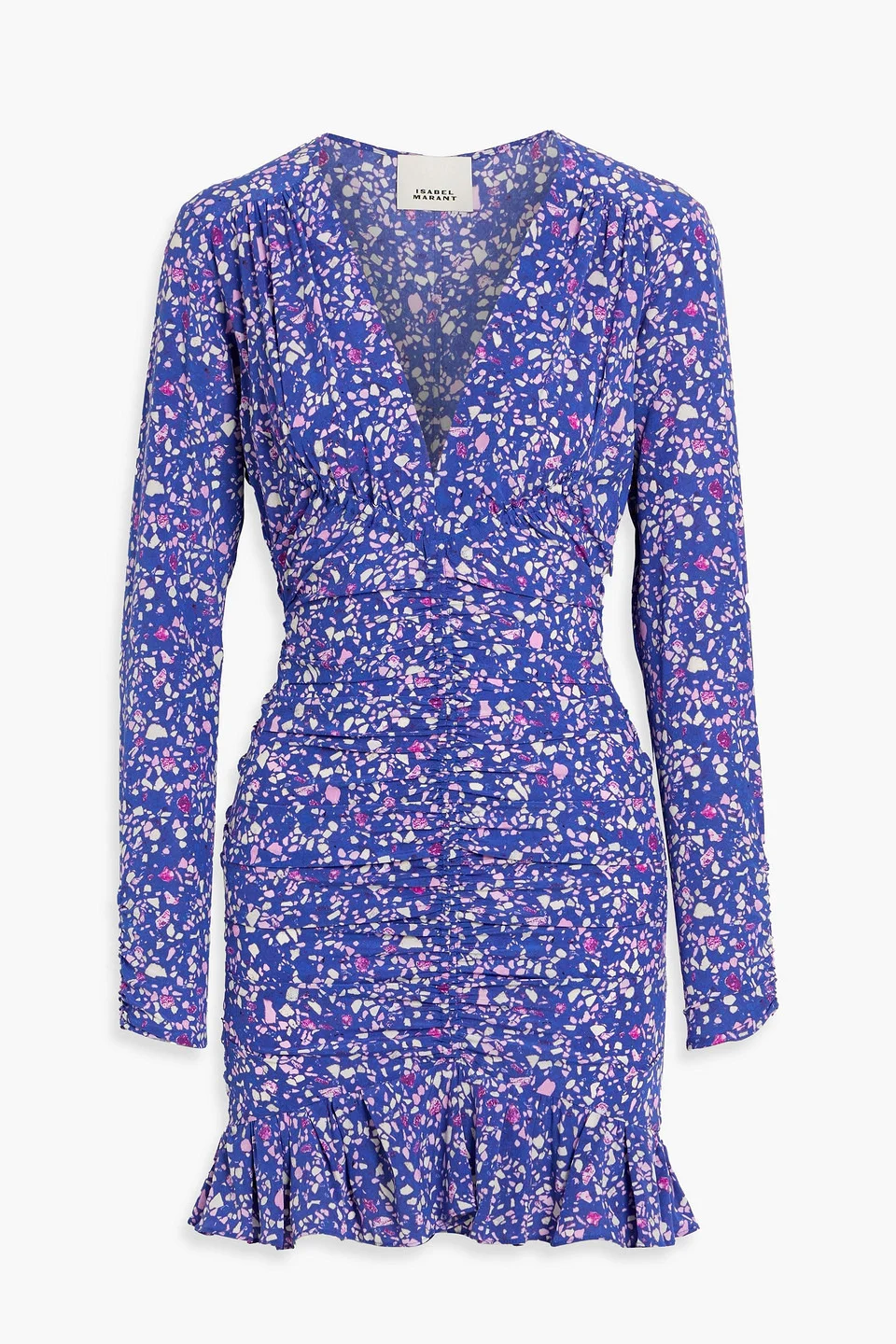 Dress printed stretch-silk ruched ruffled hem concealed zip fastening along side mid-weight, stretchy fabric dry clean imported 91% Silk 9% Elastane Product Code 46376663162923234