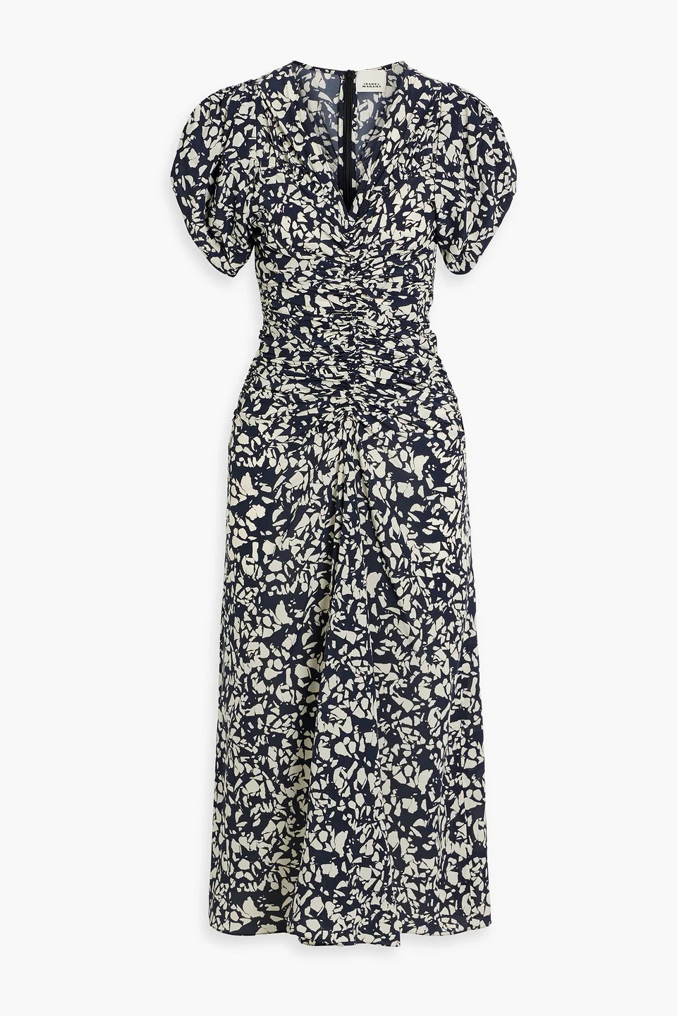 Dress printed stretch-silk ruched concealed zip fastening along back lightweight, stretchy fabric dry clean imported 91% Silk 9% Elastane Product Code 46376663162922257