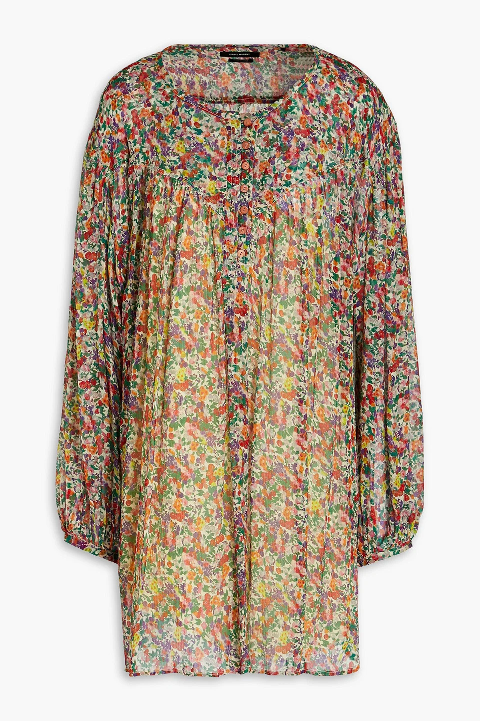 Dress floral-print silk-georgette gathered buttoned cuffs button fastenings along front detachable slip to line non-stretchy fabric lightweight fabric dry clean imported 100% Silk Product Code 1647597286315927