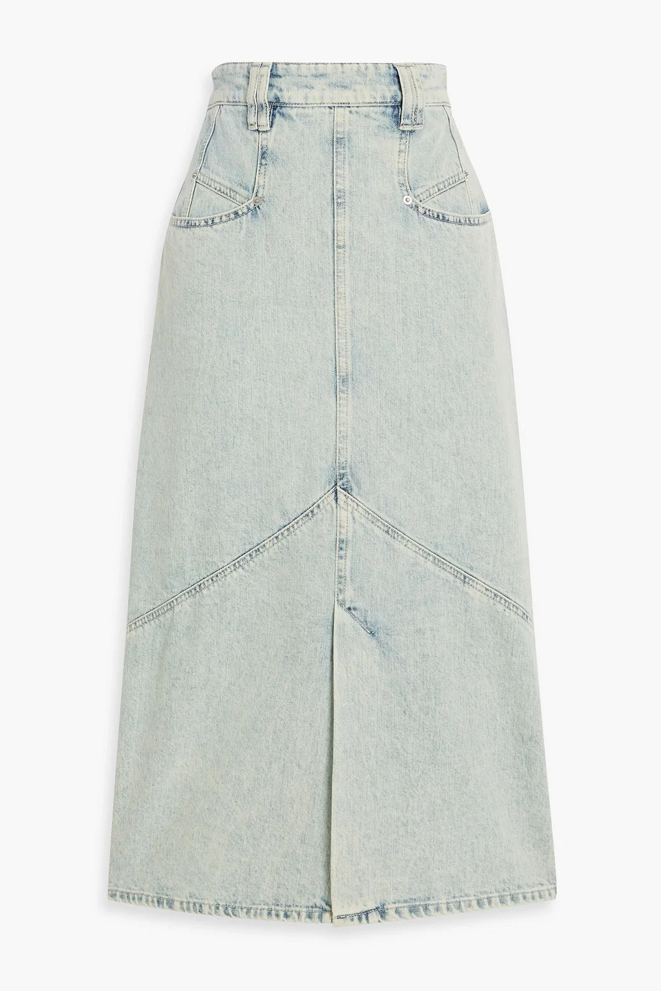 Skirt faded denim belt loops front slant pockets front slit zip fastening along back mid-weight, non-stretchy fabric machine wash imported 100% Cotton Product Code 46376663162922265