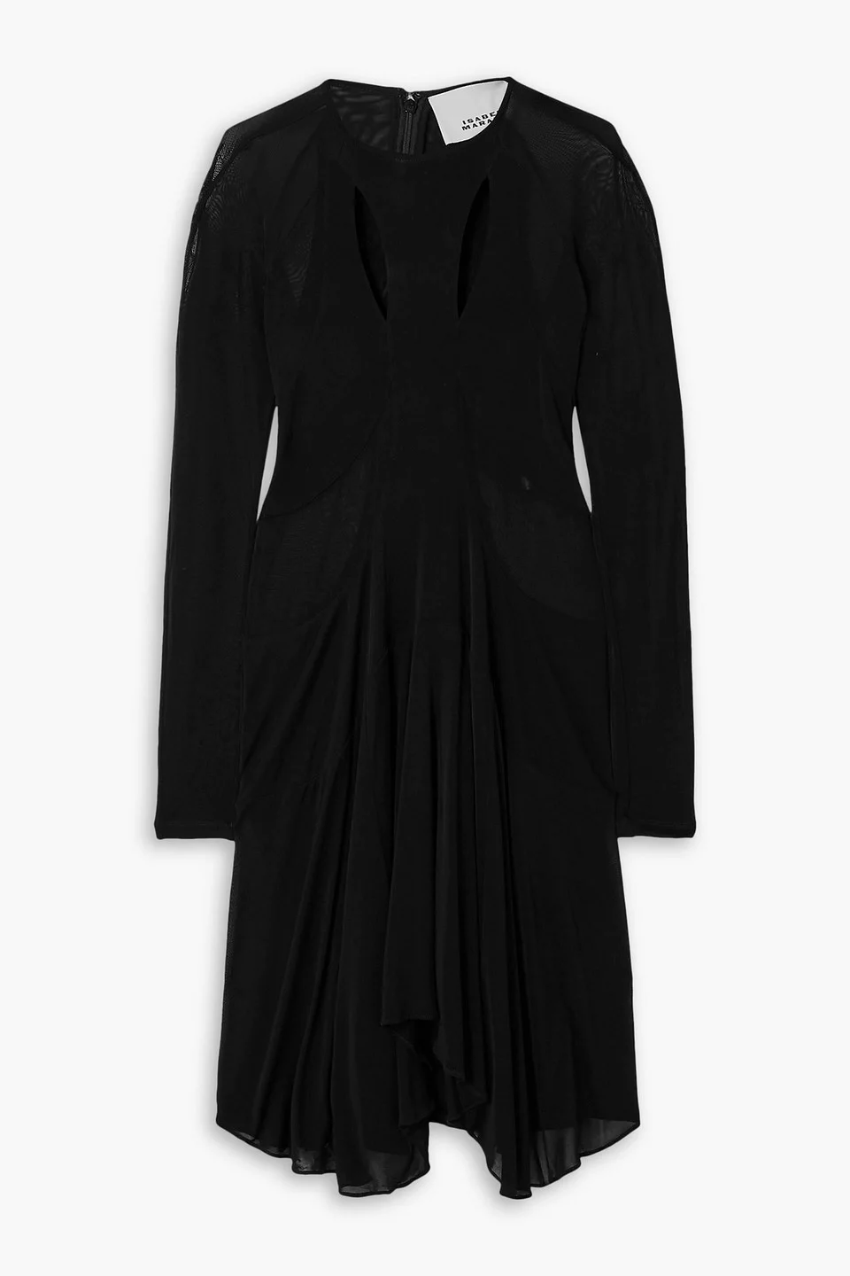 Dress jersey asymmetric hem concealed hook and zip fastening at back partially lined mid-weight, stretchy fabric dry clean imported Isabel Marant's collections are created for everyday life, the designer tries on all her pieces to ensure they're something she'd want to wear herself. Perfect for events or dinners a deux , this 'Radiya' dress is cut from semi-sheer black jersey with a gathered cross-over neckline and floaty asymmetric hem. 100% Viscose Product Code 1647597346303460