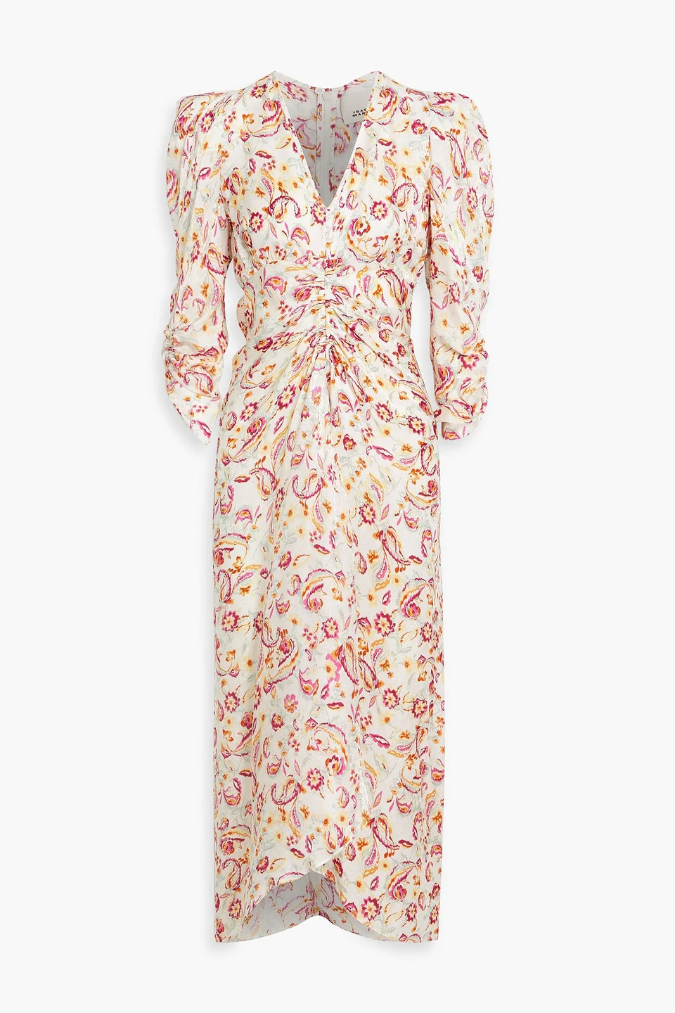 Dress printed satin-jacquard ruched concealed button and zip fastening at back mid-weight, non-stretchy fabric dry clean imported 65% Viscose 35% Silk Product Code 46376663162922140