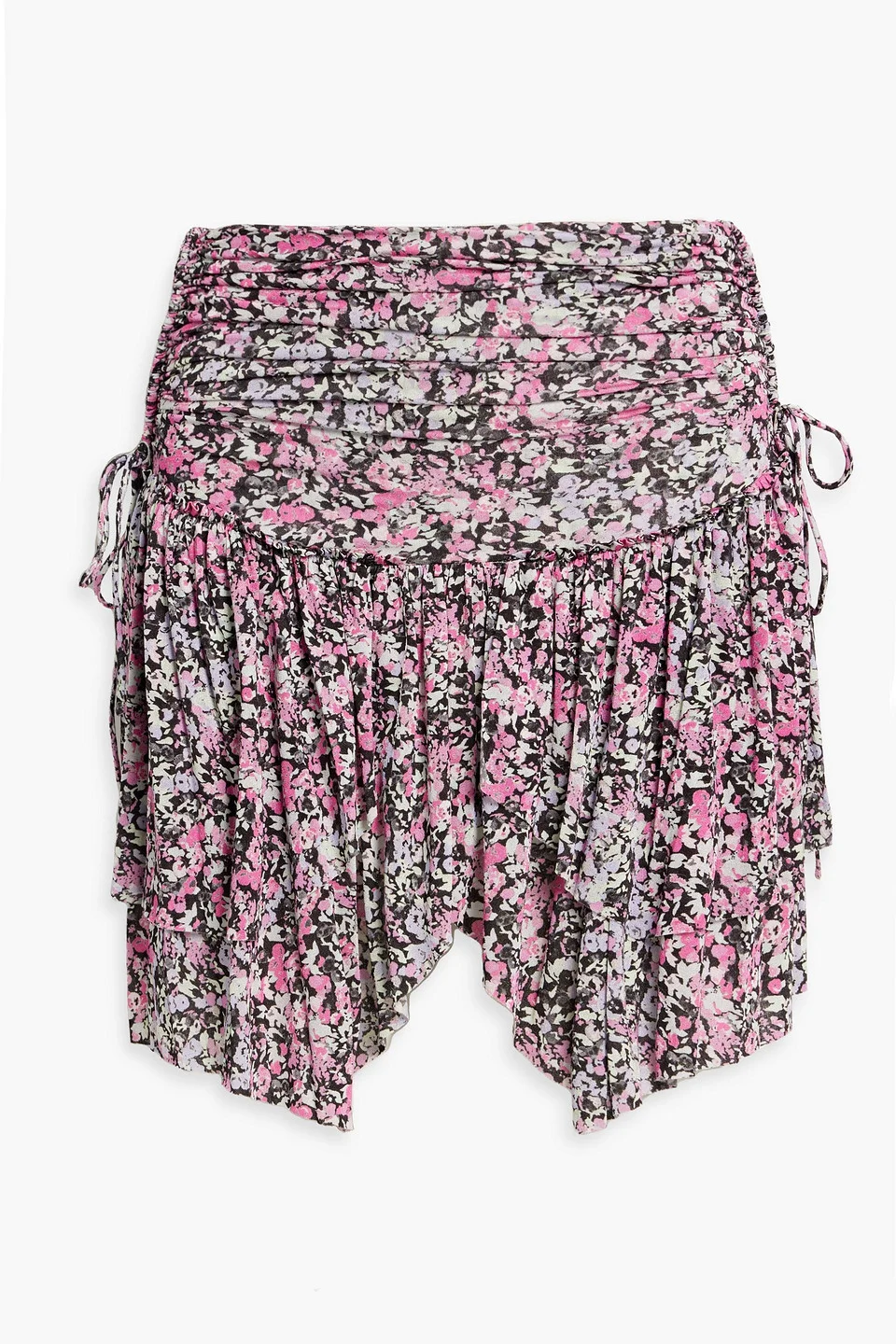 Santa ruched floral-print jersey mini skirt