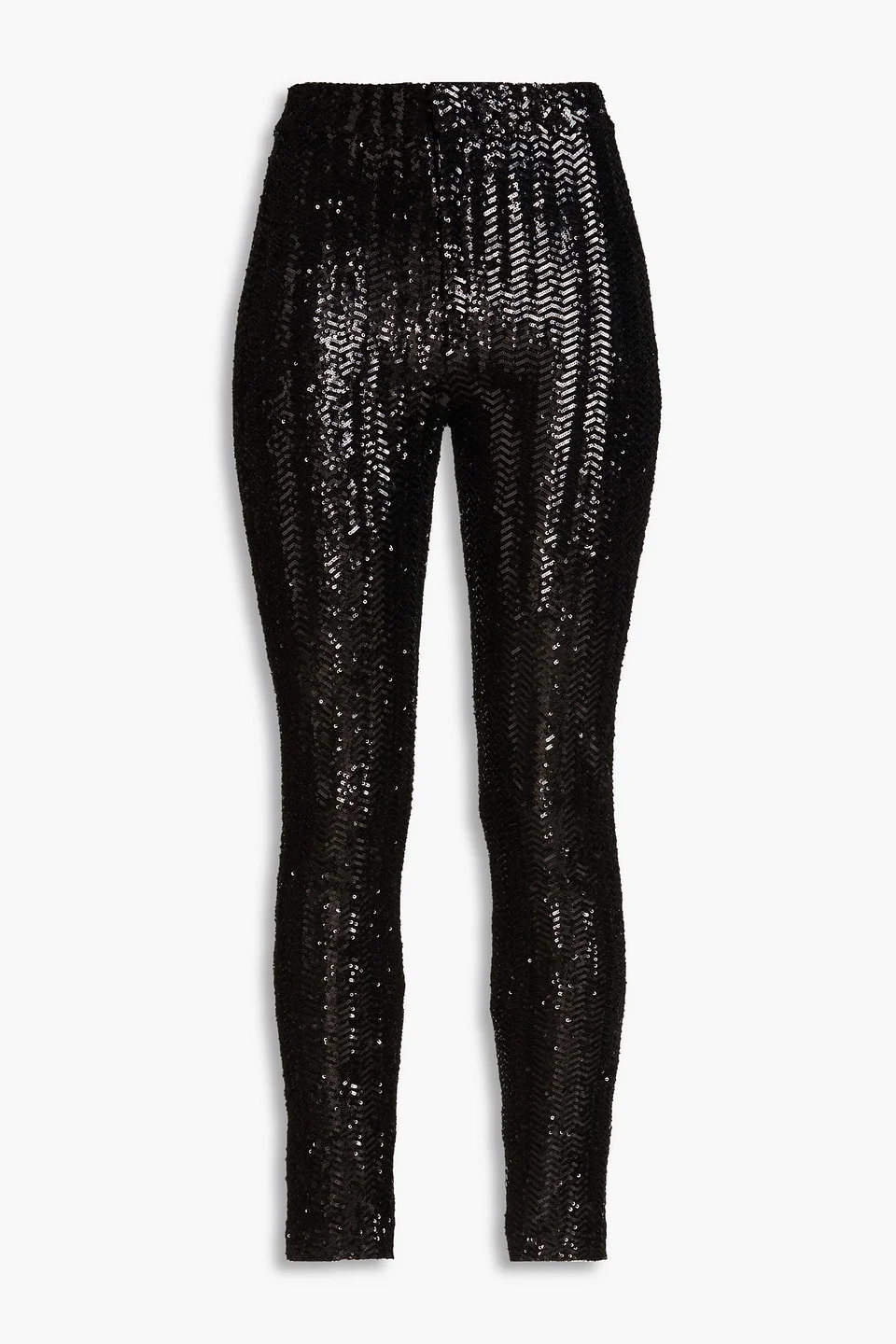 Skinny pants tulle sequins high-rise cut fully lined concealed hook, button and zip fastening at front slightly stretchy fabric mid-weight fabric dry clean imported 100% Polyester Product Code 1647597330215522