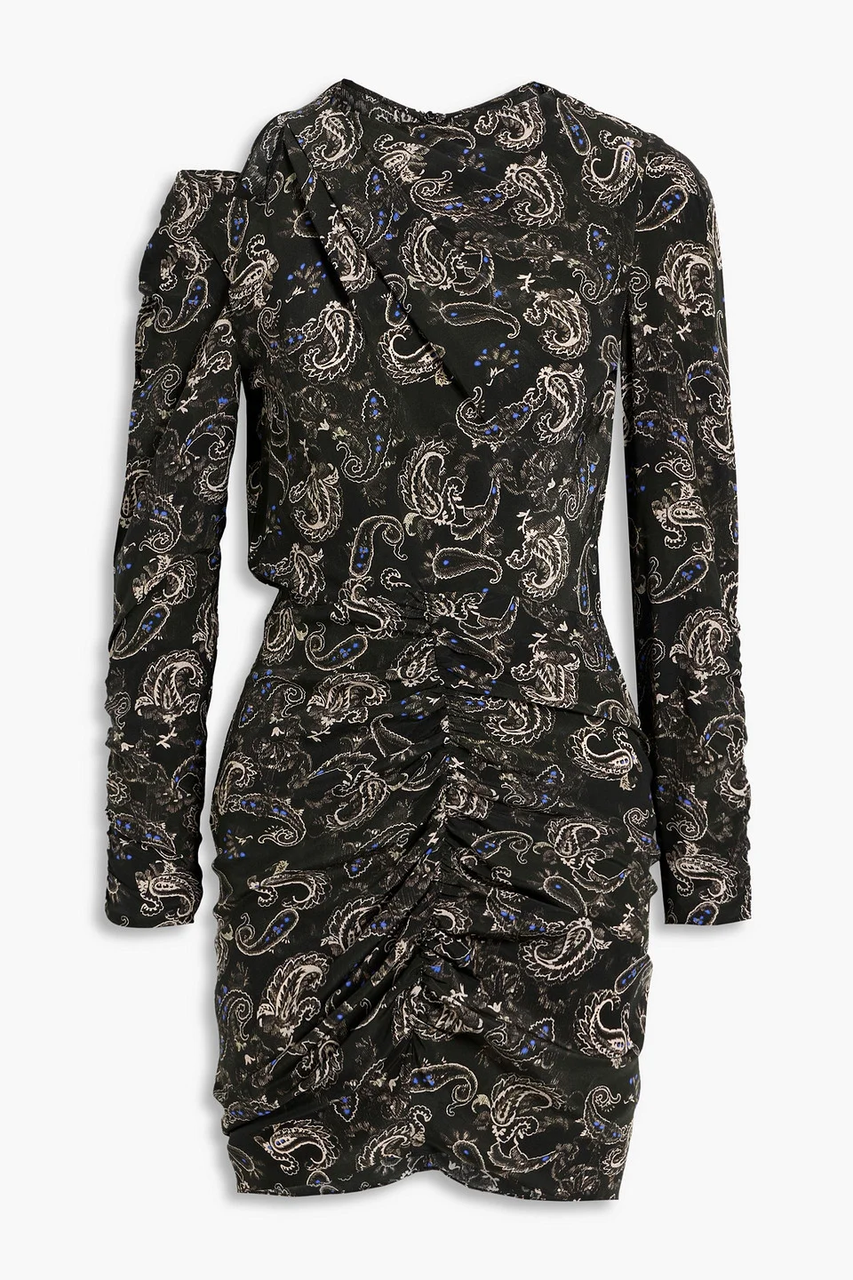 Tosca ruched paisley-print silk crepe de chine mini dress