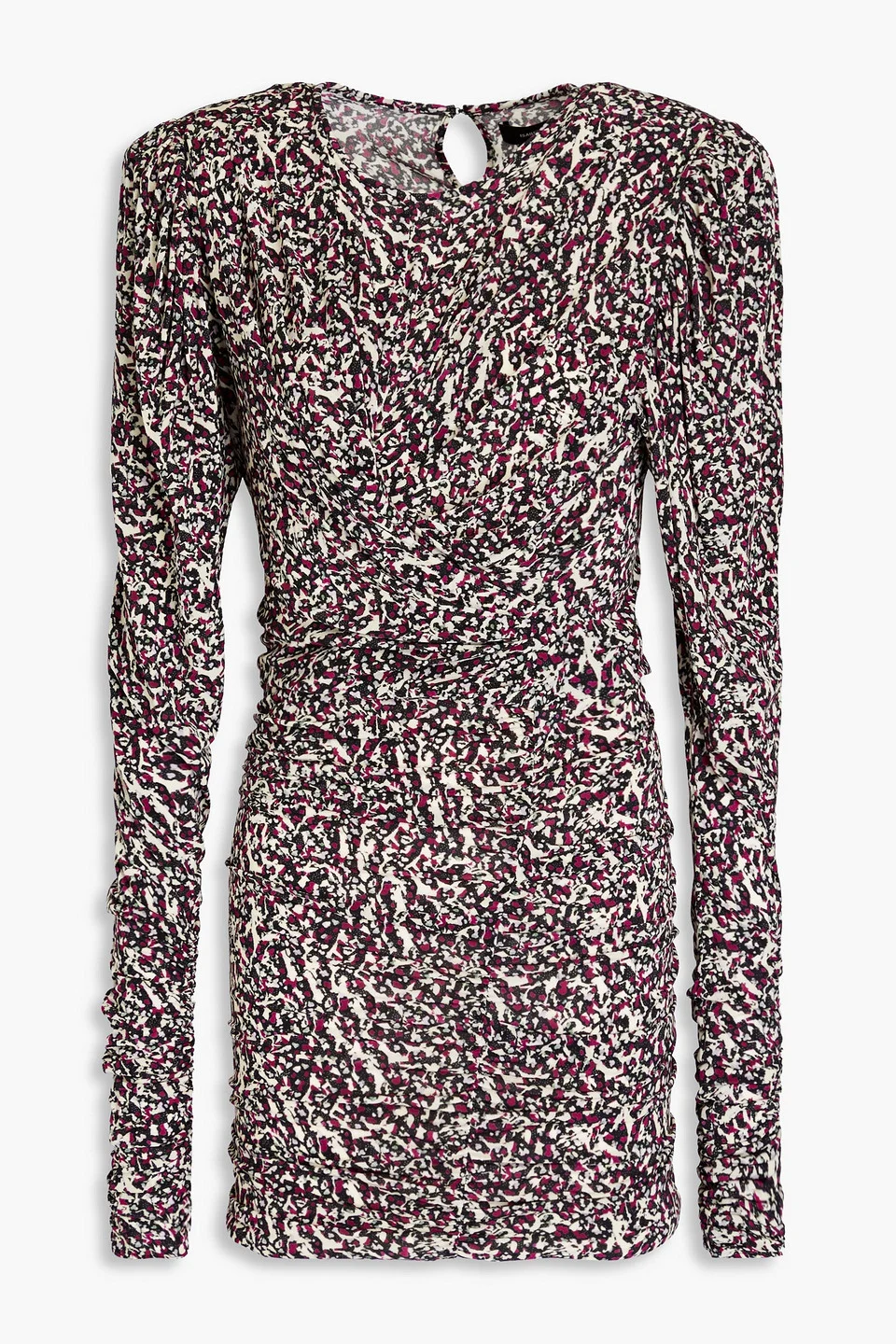 Dress printed jersey ruched shoulder pads concealed zip fastening along side hook-fastening keyhole at back partially lined stretchy fabric mid-weight fabric dry clean imported 92% Viscose 8% Elastane Product Code 1647597330031803