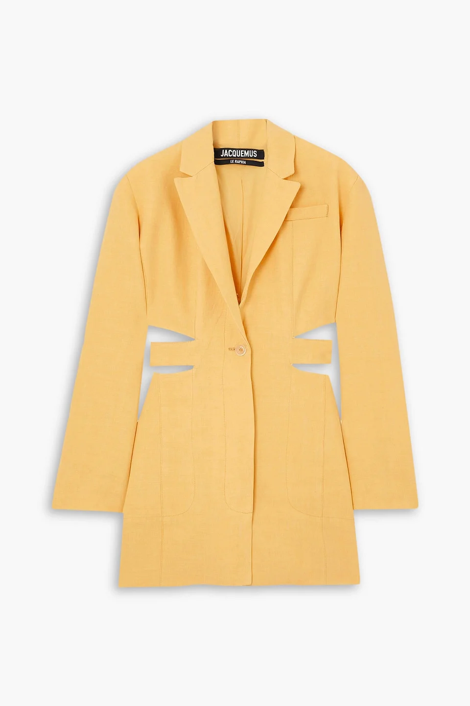 Dress linen-blend cutout shoulder pads buttoned cuffs back welt pocket partially concealed button fastenings through front button fastening at back fully lined mid-weight, non-stretchy fabric dry clean imported 60% Linen 26% Viscose 14% Polyester Product Code 46376663162874500