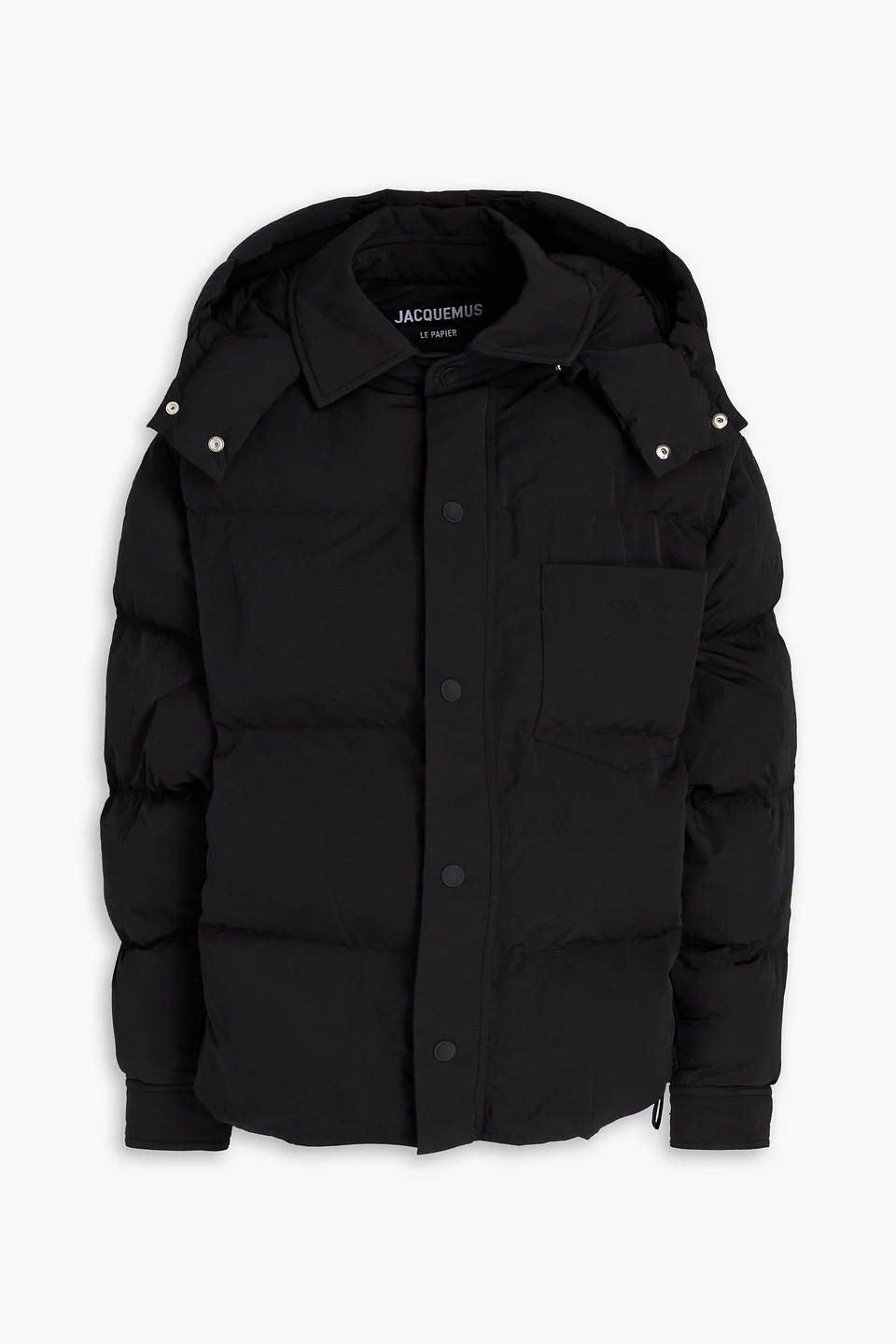 Jacket shell quilted detachable hood snap-fastening cuffs breast pocket two side slit pockets snap and concealed zip fastenings through front synthetic filling drawstring hem mid-weight, non-stretchy fabric dry clean made in italy 100% Polyamide Product Code 1647597348803474