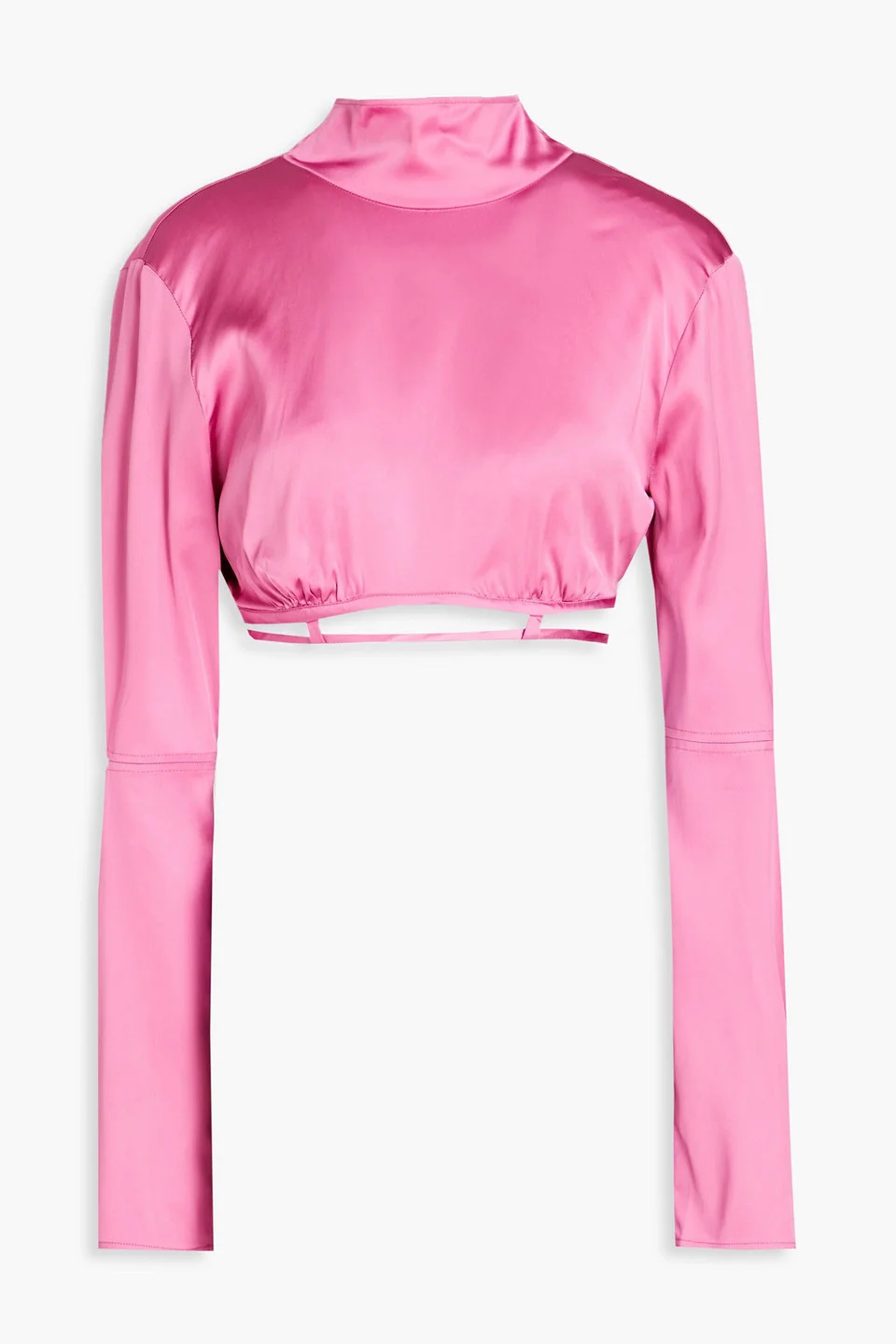 Top satin cropped cutout adjustable straps ties at back hook fastening at back non-stretchy fabric mid-weight fabric dry clean imported 96% Viscose 4% Elastane Product Code 1647597318191397