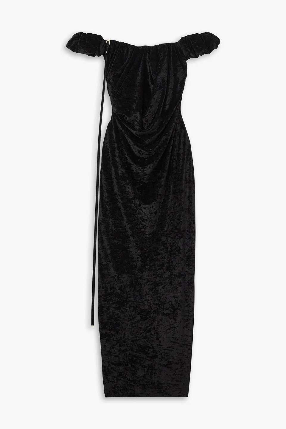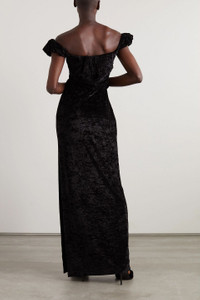 Off-the-shoulder embellished stretch-velour gown
