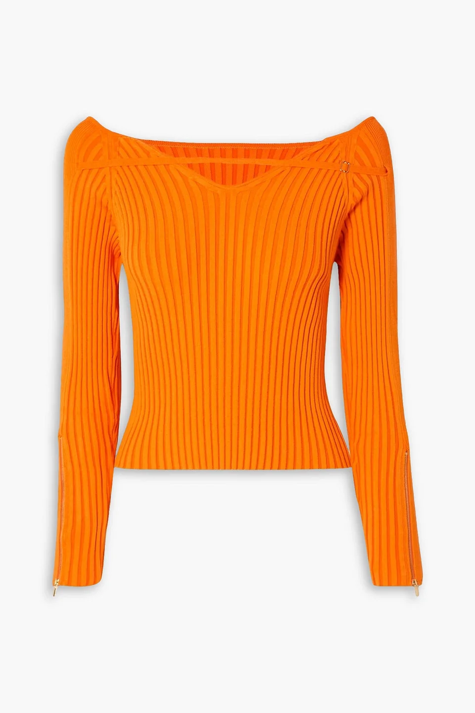 Off-the-shoulder top ribbed-knit cutout zip-detailed slips on mid-weight knit hand wash imported 81% Viscose 12% Polyamide 4% Elastane 3% Polyester Product Code 1647597313886569