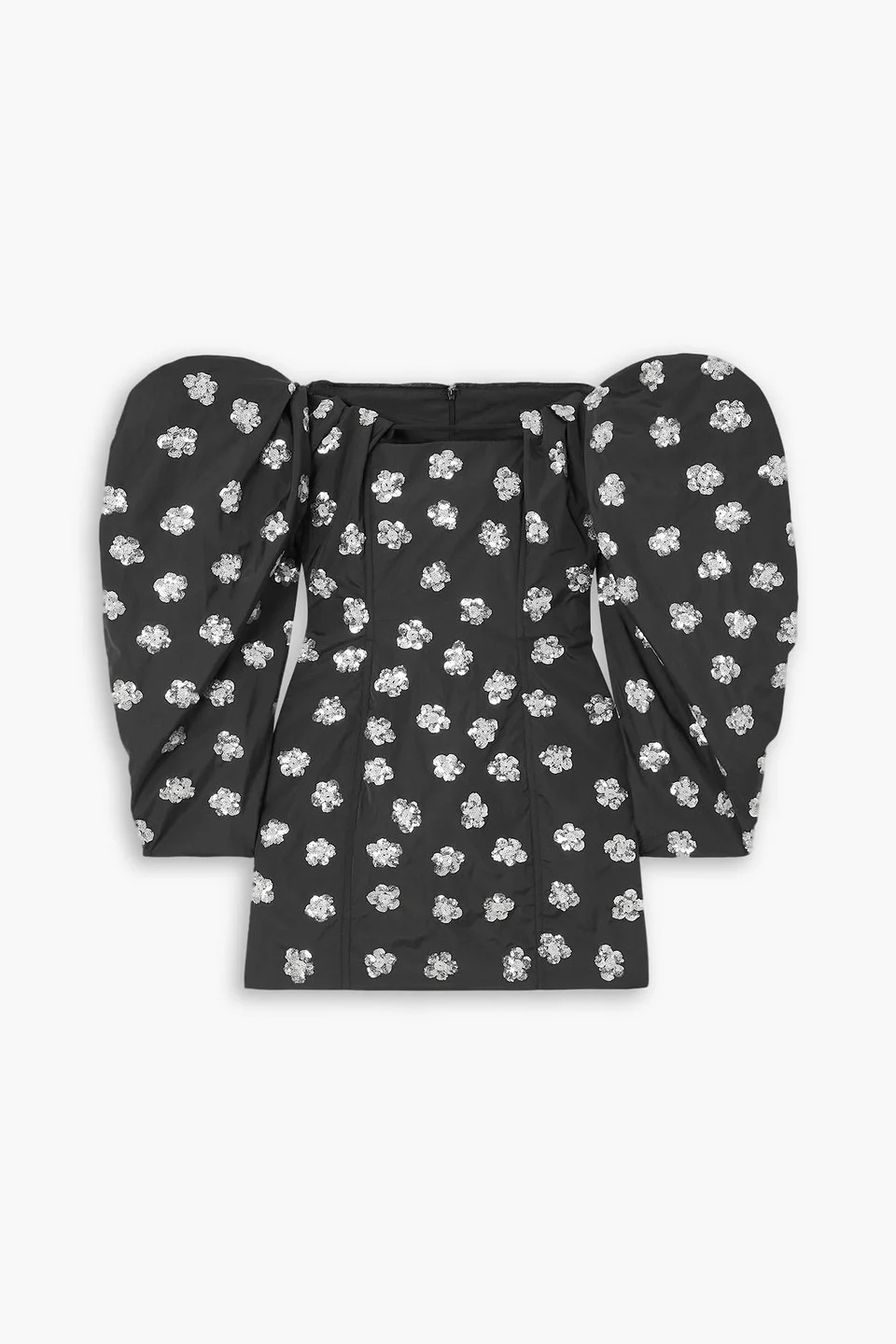 Dress taffeta sequins elasticated shoulders puffed sleeves concealed hook and zip fastening at back fully lined mid-weight, non-stretchy fabric dry clean imported Expect the glamour and playfulness you know and love from Jacquemus in their evening-approved mini. It’s made from smooth taffeta with a gathered off-the-shoulder neckline and ultra puffed leg-of-mutton sleeves. Wear silver heels to match the sequined flowers. 100% Polyester Product Code 46376663162959424