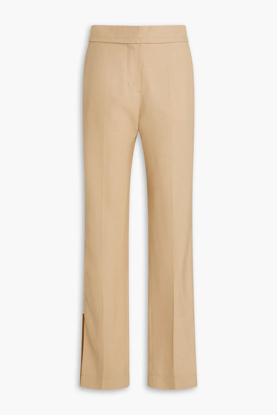 Tapered pants canvas two side slant pockets two back welt pockets high-rise cut slit cuffs concealed hook, button and zip fastening at front mid-weight, non-stretchy fabric dry clean imported 100% Viscose Product Code 46376663162864989