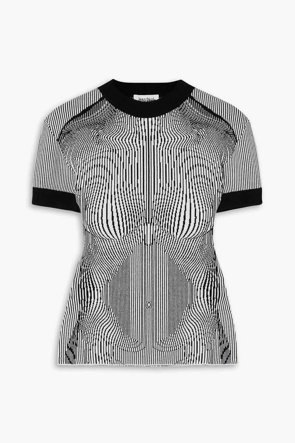 T-shirt jacquard-knit ribbed trims slips on mid-weight knit hand wash or dry clean made in italy 64% Viscose 27% Polyester 7% Polyamide 2% Elastane Product Code 46376663163076685