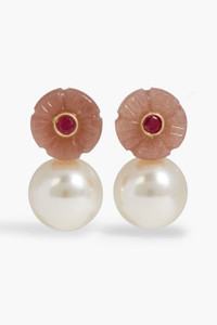 Libby gold-tone, peach moonstone and faux pearl earrings