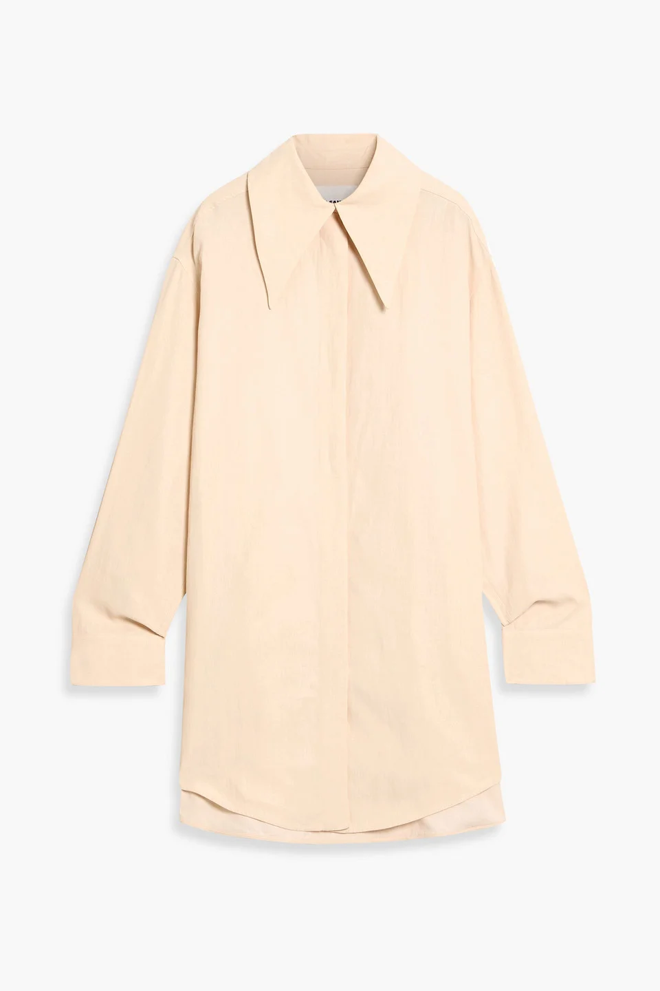 Shirt linen pleated back buttoned cuffs curved hem partially concealed button fastenings through front mid-weight, non-stretchy fabric dry clean made in italy 100% Linen Product Code 46376663163106323