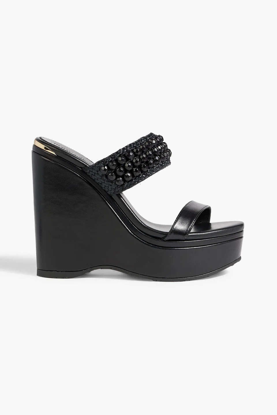 Amoure 130 bead-embellished raffia and leather wedge sandals