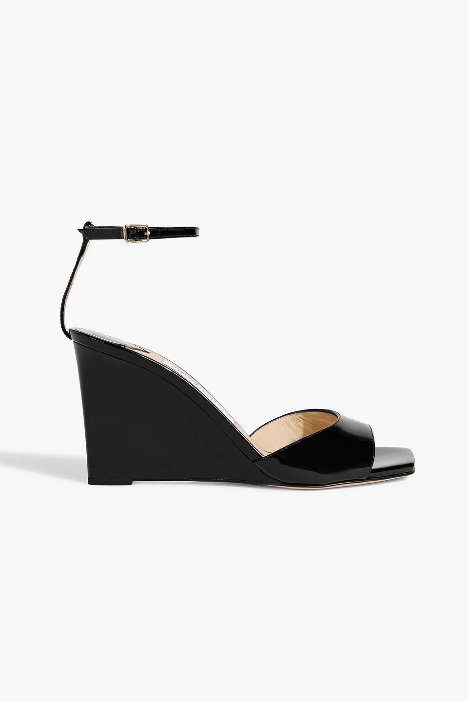 Sandals patent-leather open square toe wedge buckle-fastening ankle strap leather sole made in italy 100% Leather Product Code 1647597359510962