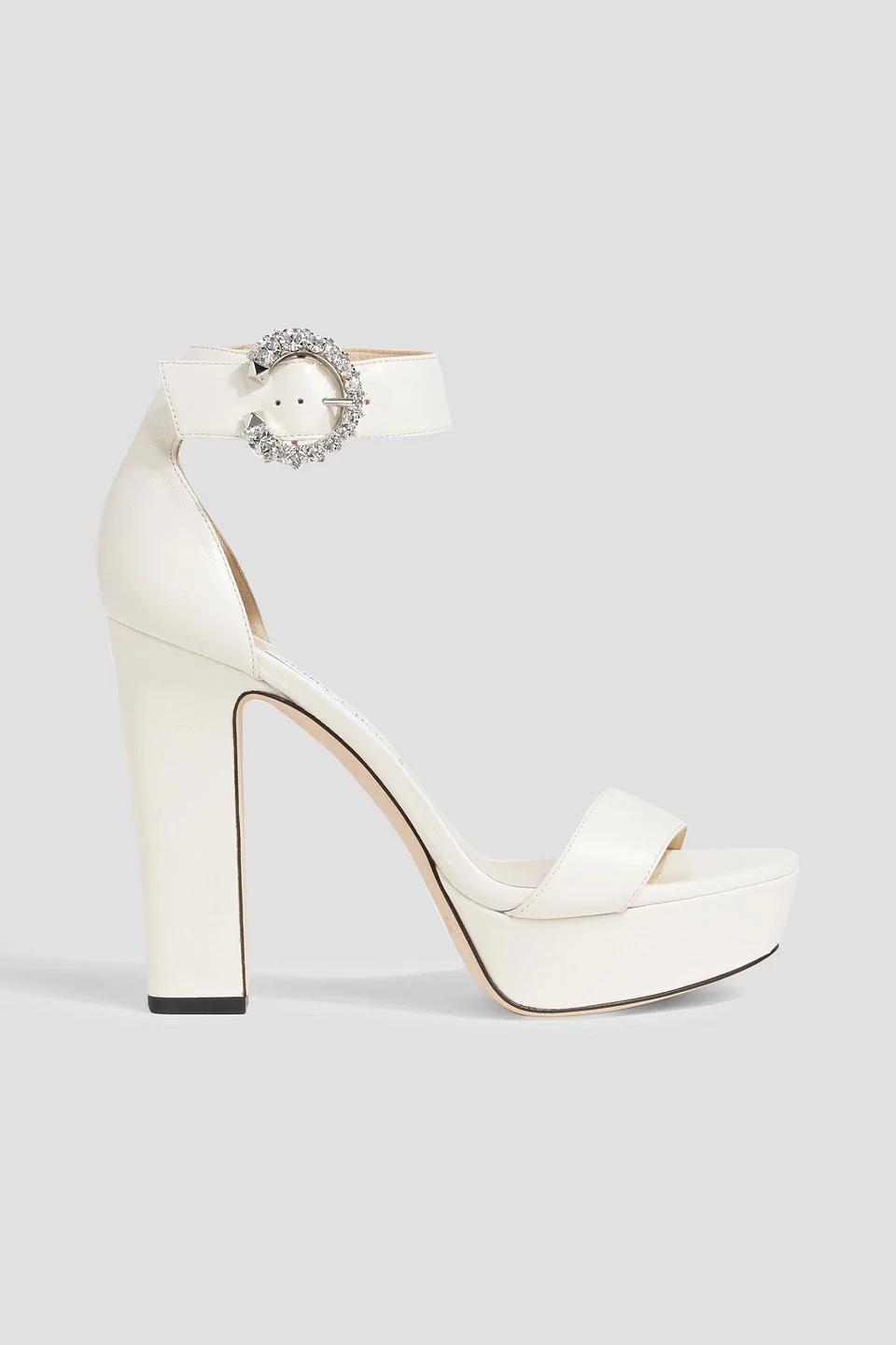 Mionne 120 Latte Leather Platform Sandals with Crystal Buckle