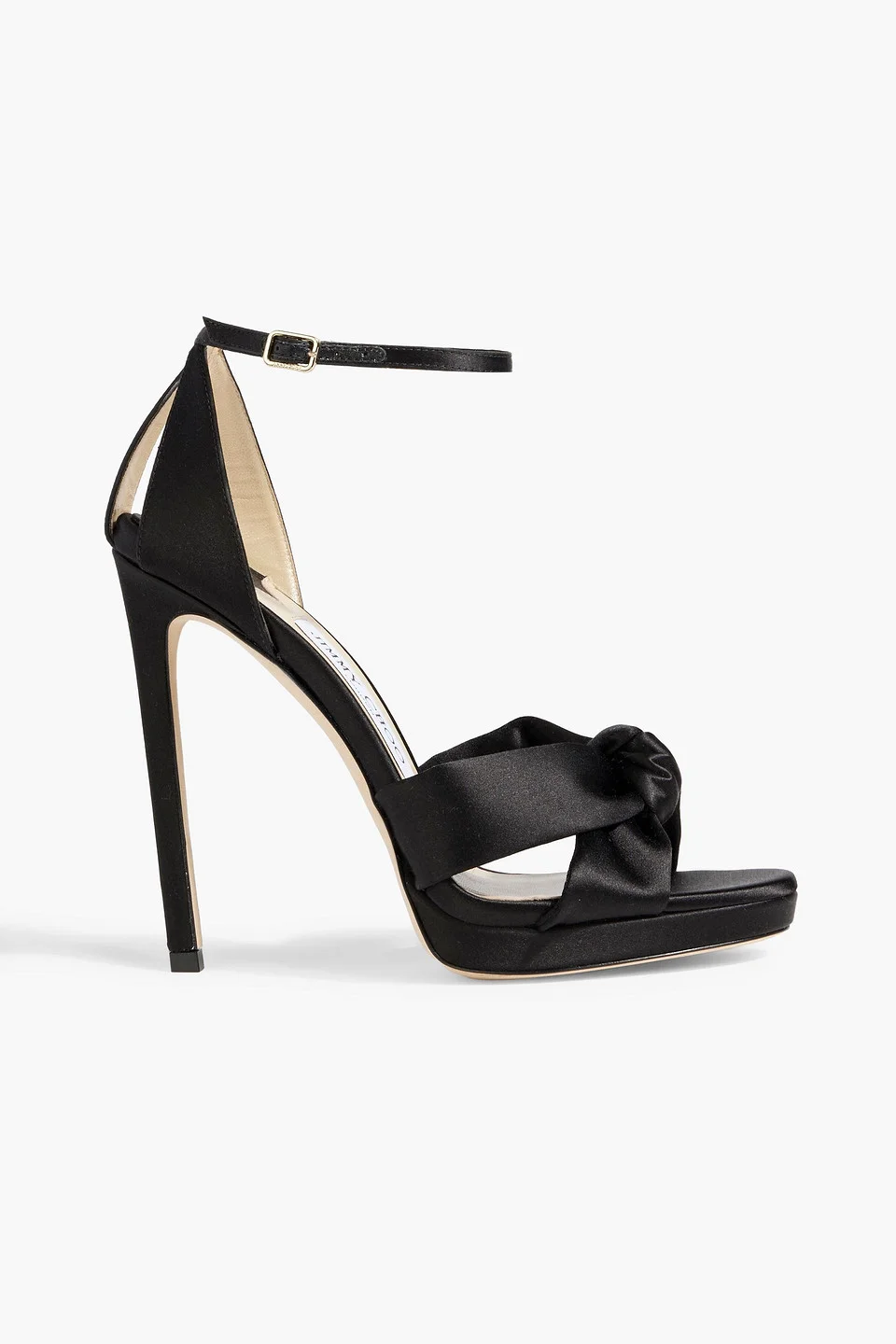 Sandals satin knotted open almond toe buckle-fastening ankle strap leather sole made in italy 100% Textile fibers Product Code 1647597332120683